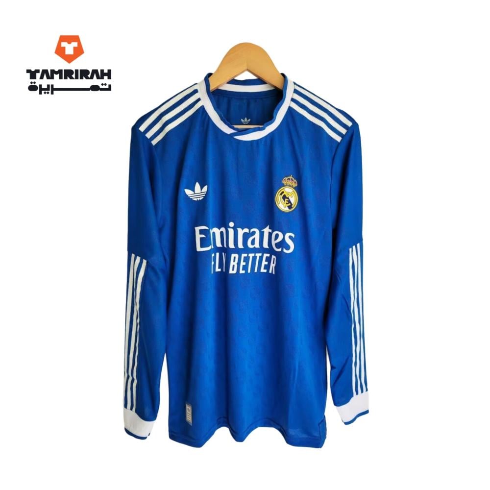 استعد لتجربة فريدة من نوعها مع تيشيرت ريال مدريد 2026 الثالث كم طويل باللون الأزرق، الذي يجسد روح الفخر والانتماء للنادي الملكي العريق.