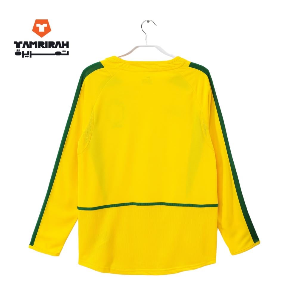 استعد لذكريات المجد الخالدة مع قميص البرازيل الأساسي، نسخة نهائي كأس العالم 2002 كم طويل، تحفة رياضية تجسد روح الفوز والإصرار!