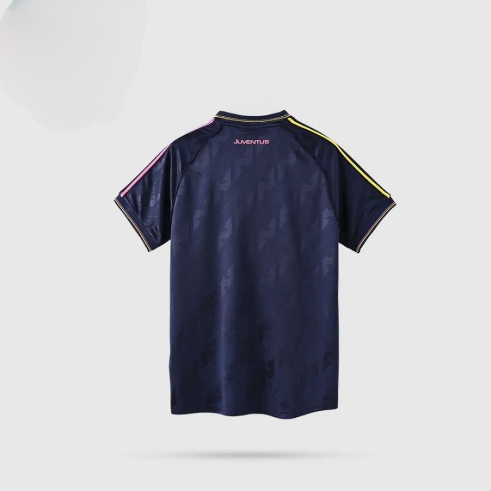 تصميم هذا القميص مستوحى من الطراز الكلاسيكي الذي يجمع بين الأصالة والحداثة. يتميز بألوان الفريق الأيقونية وشعار النادي العريق، مما يجعله قطعة لا غنى عنها لكل مشجع عاشق لتاريخ يوفنتوس.