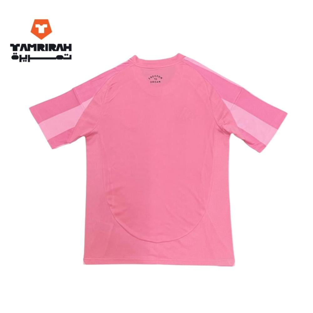 تصميم جريء وعصري يجمع بين اللون الوردي النابض بالحياة والتفاصيل السوداء الأنيقة، مما يجعله قطعة مميزة في خزانة ملابسك. سواء كنت تشجع فريقك من المدرجات، أو تمارس رياضتك المفضلة، أو حتى في حياتك اليومية، هذا التيشيرت سيمنحك إطلالة رياضية أنيقة وملفتة.