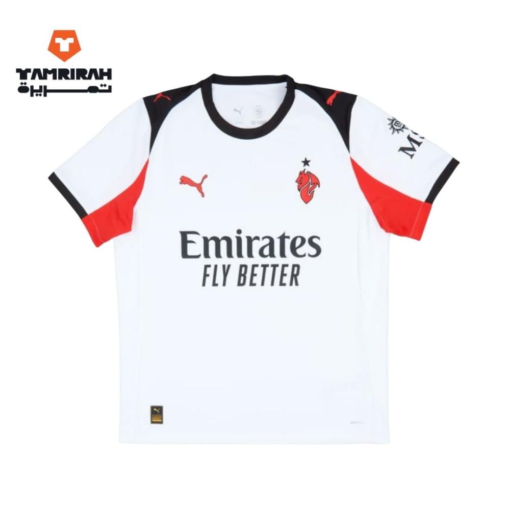 تصميمه الأنيق باللون الأبيض النقي يعكس نقاء الروح الرياضية والالتزام بالتميز، بينما تضفي لمسات اللونين الأحمر والأسود، وهما الألوان الأيقونية للفريق، لمسة من الجرأة والحيوية. تفاصيل دقيقة مثل شعار النادي وشعار الشركة المصنعة "بوما" مطبوعان بتقنية عالية الجودة، مما يضمن مظهراً جذاباً ومتانة فائقة.