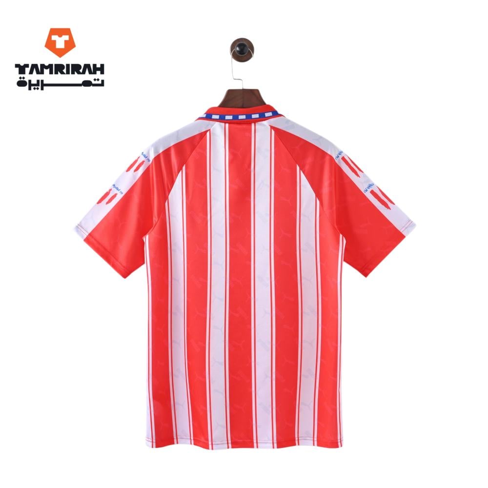 استعد لذكريات المجد مع قميص أتلتيكو مدريد الكلاسيكي موسم 1994 – إصدار ريترو، تحفة فنية تجسد روح الفريق وشغف الجماهير في تلك الحقبة الذهبية.