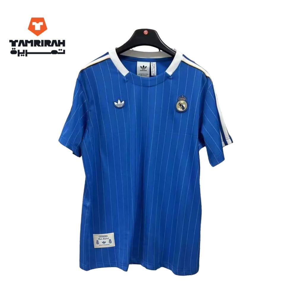 استعد لإحياء ذكريات المجد مع تيشيرت ريال مدريد الأزرق ريترو هوم 2026 - قطعة فريدة تجسد تاريخ وعراقة النادي الملكي.