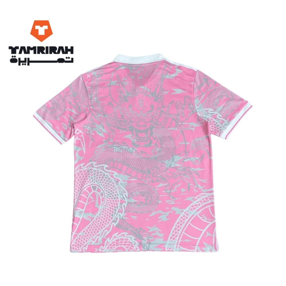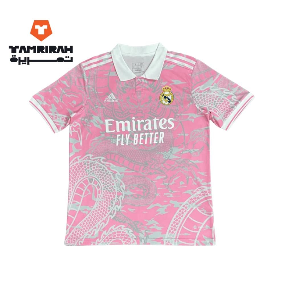 - اسم المنتج: تيشيرت ريال مدريد الوردي إصدار خاص بتصميم التنين