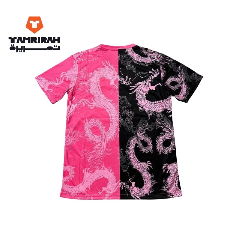 هذا التيشيرت ليس مجرد قطعة ملابس، بل هو رمز للانتماء والشغف. يأتي بتصميم جريء يجمع بين اللونين الزهري والأسود، مزينًا بنقوش التنين الأسطوري الذي يمثل القوة والعزيمة. إنه مزيج مثالي بين الأناقة الرياضية والجاذبية العصرية.
